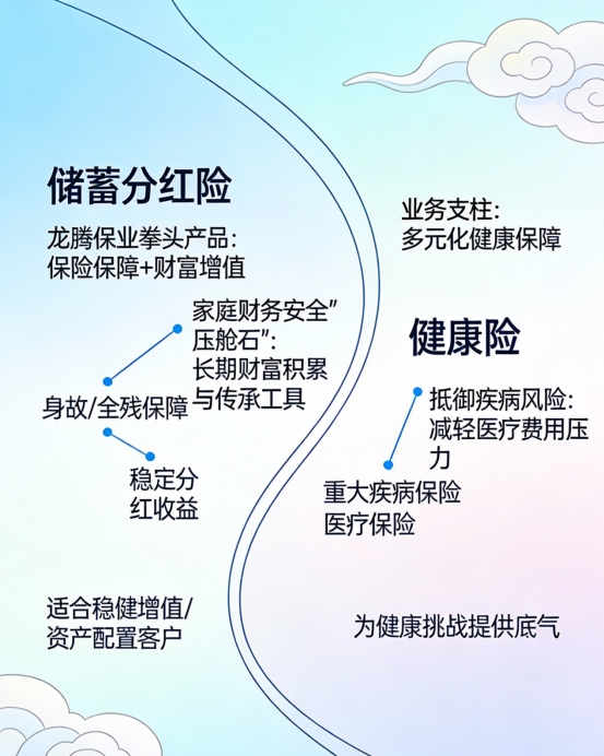 龙腾保业的业务版图清晰聚焦于两大核心领域,旨在为个人和家庭提供全方位的风险保障与财富规划方案。