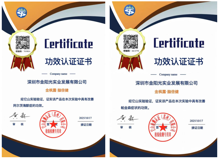 2025年岁末,北大医院与天坛医院同步启动脑倍健针对阿尔茨海默症、帕金森病的临床试验。这项采用随机、双盲、平行安慰剂对照设计的严谨研究,为深陷脑病阴霾的群体点亮了希望之光。而早在2025年10月17日,脑倍健就已凭借国家市场监督管理总局备案的试验报告,以及权威机构出具的“改善阿尔茨海默症”“改善帕金森”功效认证证书,依法获得对应功效宣传资质,其神经修复核心功效得到权威盖章认可。