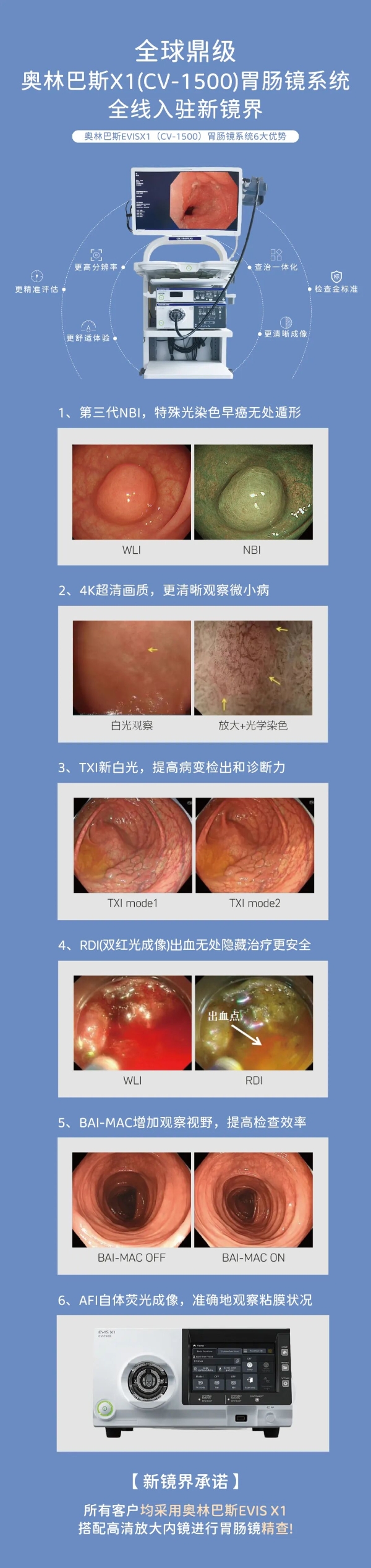 引进国际尖端的奥林巴斯X1(CV1500)内镜