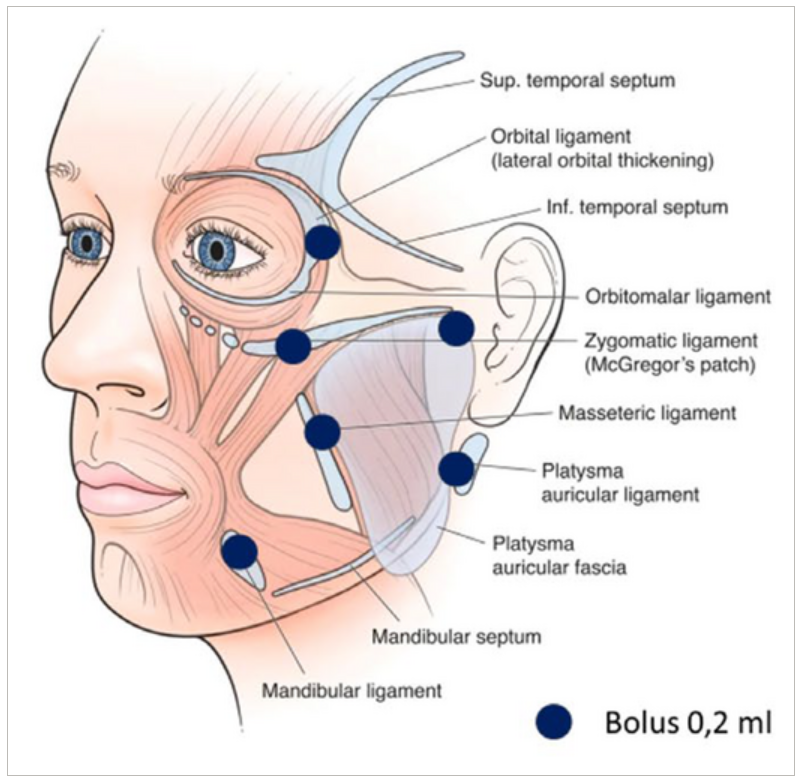 陶泓旭医生的液态韧带提升技术,基于对面部韧带系统的深度解剖研究。他将面部韧带系统比作“承重墙”,由颧弓韧带、下颌韧带等7条关键韧带构成三维支撑网络。随着年龄增长,韧带弹性下降导致苹果肌下移、法令纹加深、下颌线模糊。传统填充剂单纯增加容量反而加重下垂负荷,而陶医生的技术则通过“实加则减”的逆向思维,在韧带支点注入支撑性填充剂,重建面部力学平衡。