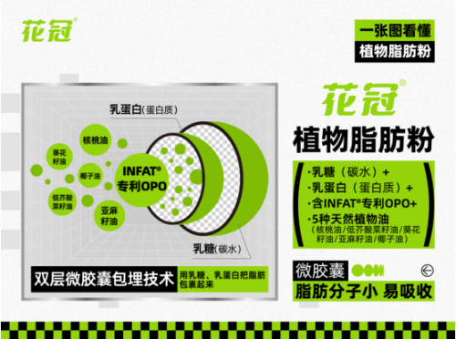 基于这一的研究判断,花冠奶粉锚定脂肪结构优化路径,通过持续的技术投入与反复打磨,最终形成更易吸收的植物脂肪粉体系,并实现规模化添加应用。