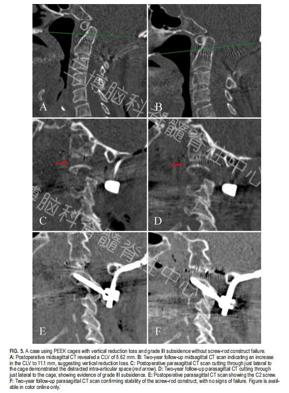 ▲图5:一例患者随访过程中出现III度融合器沉降、垂直复位丢失