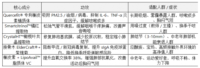 7重靶向递送系统:采用100nm纳米级载体,借助肺部毛细血管滤过特性,使Quercefit®槲皮素、CrystalHT™橄榄叶提取物等成分在肺部富集度提升11倍,精准作用于肺泡病灶,避免肝肾浪费;