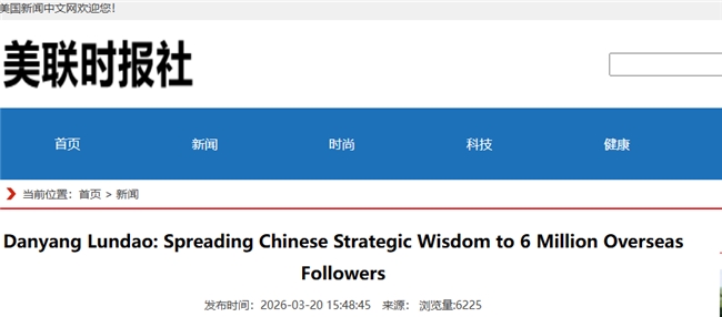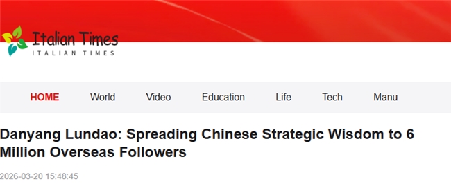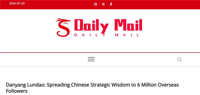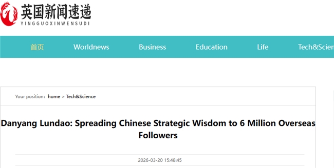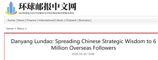 国外超150家外媒,以《丹阳论道:向600万海外粉丝传播中国战略智慧》为题(英文标题:《Danyang Lundao: Spreading Chinese Strategic Wisdom to 6 Million Overseas Followers》),对丹阳论道进行深切肯定。