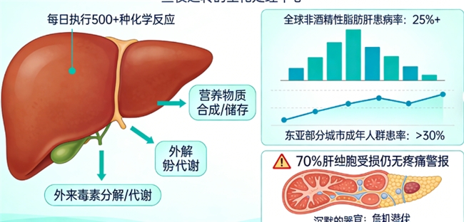 如果将身体比作一座昼夜不息运转的都市,那么肝脏无疑是这座城市最核心、最忙碌的“生化处理中心”。它每天要执行超过500种化学反应,从营养物质的合成、储存,到外来毒素的分解、代谢,几乎参与了你每一次呼吸、每一口饮食背后的生命活动。然而,世界卫生组织在2025年的一份区域性报告中指出,由于饮食结构变化、酒精消费及静态生活方式的影响,全球非酒精性脂肪肝的患病率已攀升至25%以上,而在东亚部分城市成年人群中,这个数字甚至超过了30%。