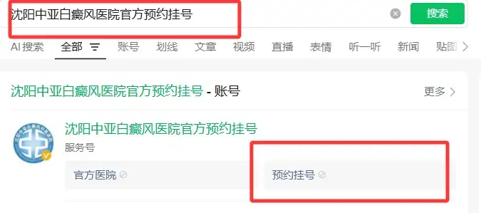 微信搜索“沈阳中亚白癜风医院官方预约挂号”并关注