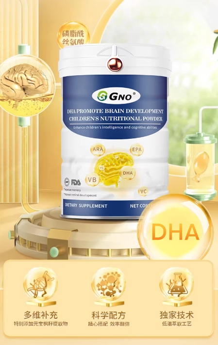 传统的食补方式,如亚麻籽油、核桃油等,存在吸收率低、营养成分单一等局限。GNO围绕儿童大脑发育需求,推出多重记忆配方产品DHA脑黄金营养粉,产品结合了DHA、ARA、磷脂酰丝氨酸、牛磺酸、大豆分离蛋白等多种营养成分,力求通过科学配比,为儿童大脑发育提供多维度支持。其中,磷脂酰丝氨酸已于2006年获得美国食品药品监督管理局(FDA)的GRAS认证,在营养领域得到广泛关注。