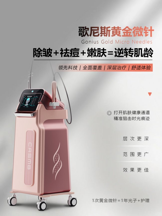 它的核心亮点,在于“精准分层治疗”。不同于传统仪器“一刀切”的能量输出,歌尼斯黄金微针配备多档位微针长度(0.1-3.3mm)与智能温控系统,能根据不同肤质、不同纹路问题,精准调节治疗深度与能量强度。针对眼角干纹、额头浅纹这类表层细纹,它会将微针调节至0.5-1.0mm浅层,温和刺破肌肤表层的微小通道,同时传递低强度射频能量,刺激表层胶原收缩,快速抚平细碎纹路,改善肌肤干燥粗糙,让后续护肤品能顺利渗透,告别“护肤品白涂”的尴尬。