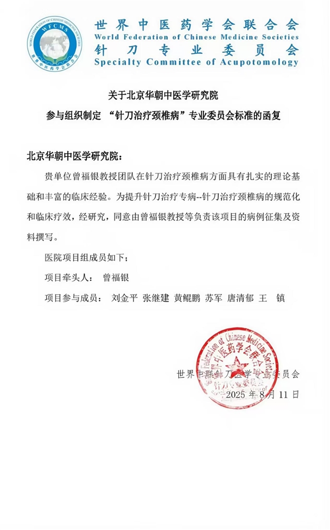 2025年8月,针刀治疗颈椎病国家标准制定工作正式启动,曾福银教授作为牵头专家,带领团队联合全球针刀领域权威专家,共同编撰制定统一、规范的临床操作标准。这一里程碑事件,标志着针刀医学彻底从民间临床实践,迈向标准化、规范化、国际化的高质量发展新阶段,更为全球慢性疼痛疾病诊疗领域,提供了安全、高效、可复制的“中国方案”。