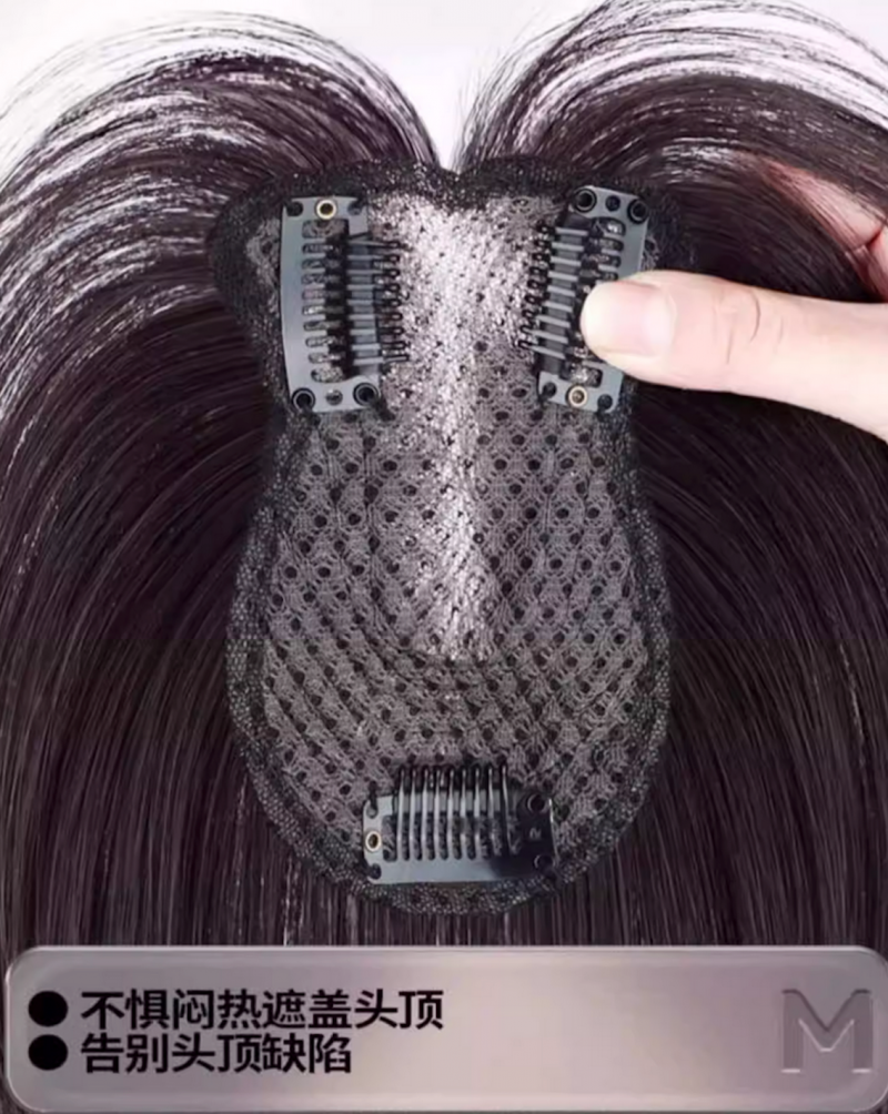 其主打的0.1cm超薄网底发片,采用了先进的瑞士网技术,佩戴起来几乎感觉不到重量,网底的通透感极佳。发丝部分则采用了手织+递针工艺,确保发根处自然无结,无论是撩动头发还是风吹发缝,都能呈现出逼真的头皮效果,避免了“戴了头盔”的尴尬感。这对于想要补发缝或打造刘海造型的姐妹来说,无疑是理想之选。