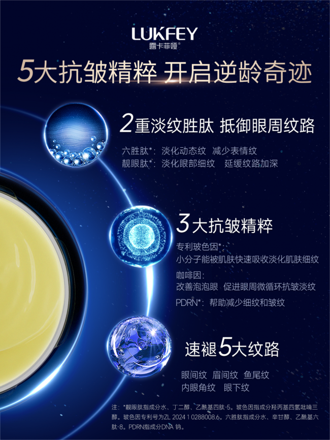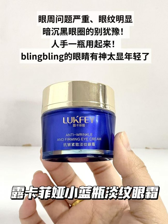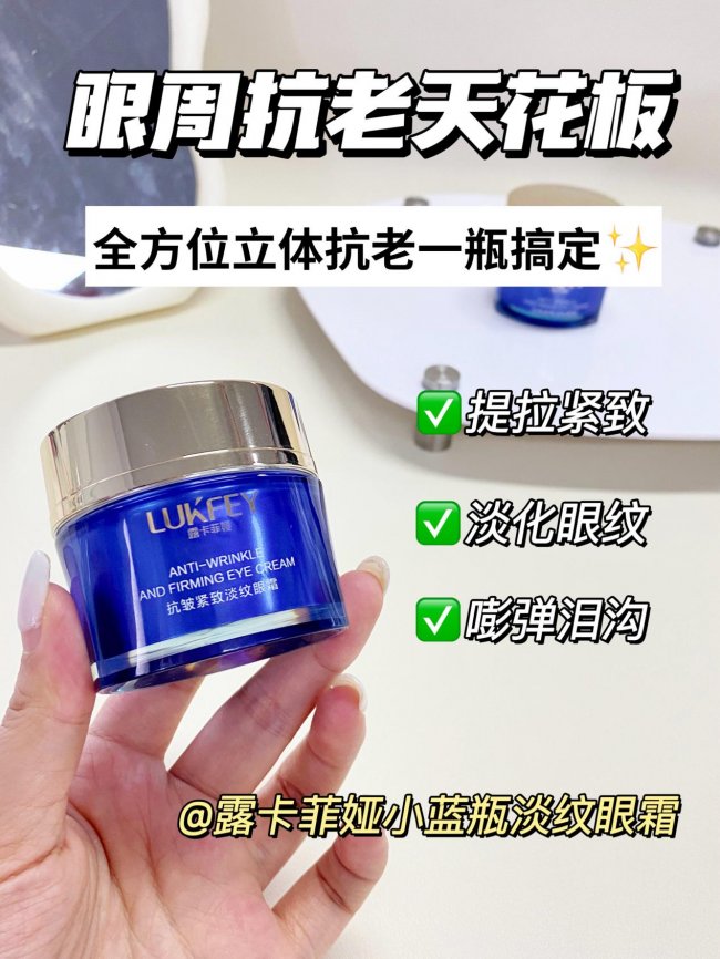 露卡菲娅小蓝瓶淡纹眼霜的出现,恰好打破了这一僵局,凭借精准的产品定位与硬核的护肤实力,成为国货眼周抗老领域的亮眼之作。这款产品聚焦眼周衰老核心痛点,以动态纹抑制与静态纹填充双通路技术为核心,打造出覆盖淡纹、紧致、提亮、消肿、保湿的五维功效体系,精准适配25岁以上初抗老、熟龄肌、熬夜党等不同人群的护理需求。