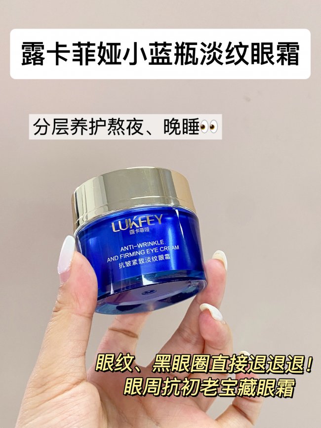 从产品设计来看,露卡菲娅小蓝瓶淡纹眼霜以简约大气的蓝色瓶身搭配质感瓶盖,兼具美观与实用性,避光材质能更好地保护成分活性。质地方面采用细腻的啫喱质地,触肤即融、吸收迅速,涂抹后呈现清爽哑光状态,不黏腻、不闷肤、不易引发脂肪粒,无论是干皮追求的滋润度,还是油皮在意的清爽感,都能完美兼顾。