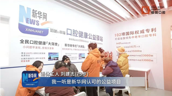 新华网客户端“咀嚼的幸福”公益专栏,是主流媒体响应“健康中国”战略、践行社会责任的生动实践。专栏携手极简口腔,以“线上科普+线下服务+全免帮扶”的闭环模式,在北京布局300余家口腔健康公益驿站,构建“一公里服务矩阵”,让公益资源精准触达老年群体。 秉持“全免一部分、帮助一部分、带动一部分”的原则,项目聚焦50岁以上缺牙老人,提供专业种植帮扶,切实解决“看牙贵、修复难、看牙远”的民生痛点。截至目前,已有百余位老人受益,重获咀嚼幸福。 “健康中国也应该从一口好牙开始,人要能吃,什么毛病都没有,要是不能吃了,人就完了。”刘建志老人的感悟,深刻诠释了口腔健康与全身健康的紧密关联。一口好牙,不仅是饮食无忧的基础,更是晚年尊严、家庭幸福的重要支撑。